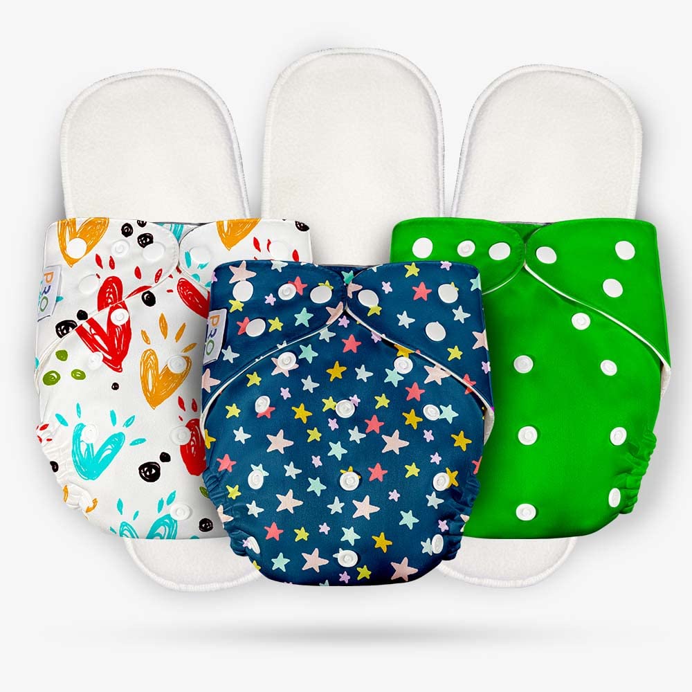 Cloth Diaper (BLUE-STAR, HEART & GREEN)