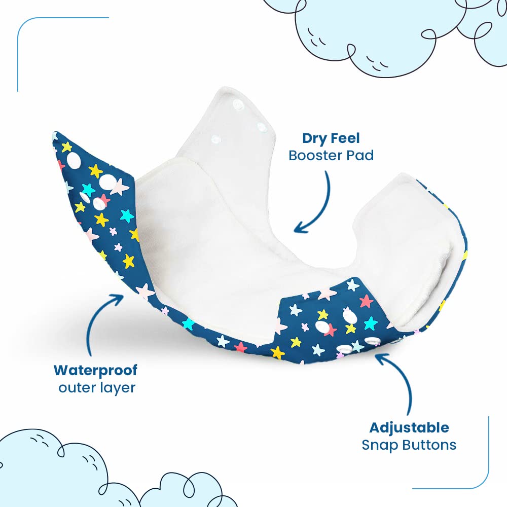 - All in One Adjustable: Liltoes Cloth Diaper has Smart Snap Buttons on the pocket to make it one size for all. You can Easily Adjust the size S, M and L of the Diaper. That is the reason Liltoes Cloth Diaper is so economical by using same diaper for a new born baby to potty trained Baby.