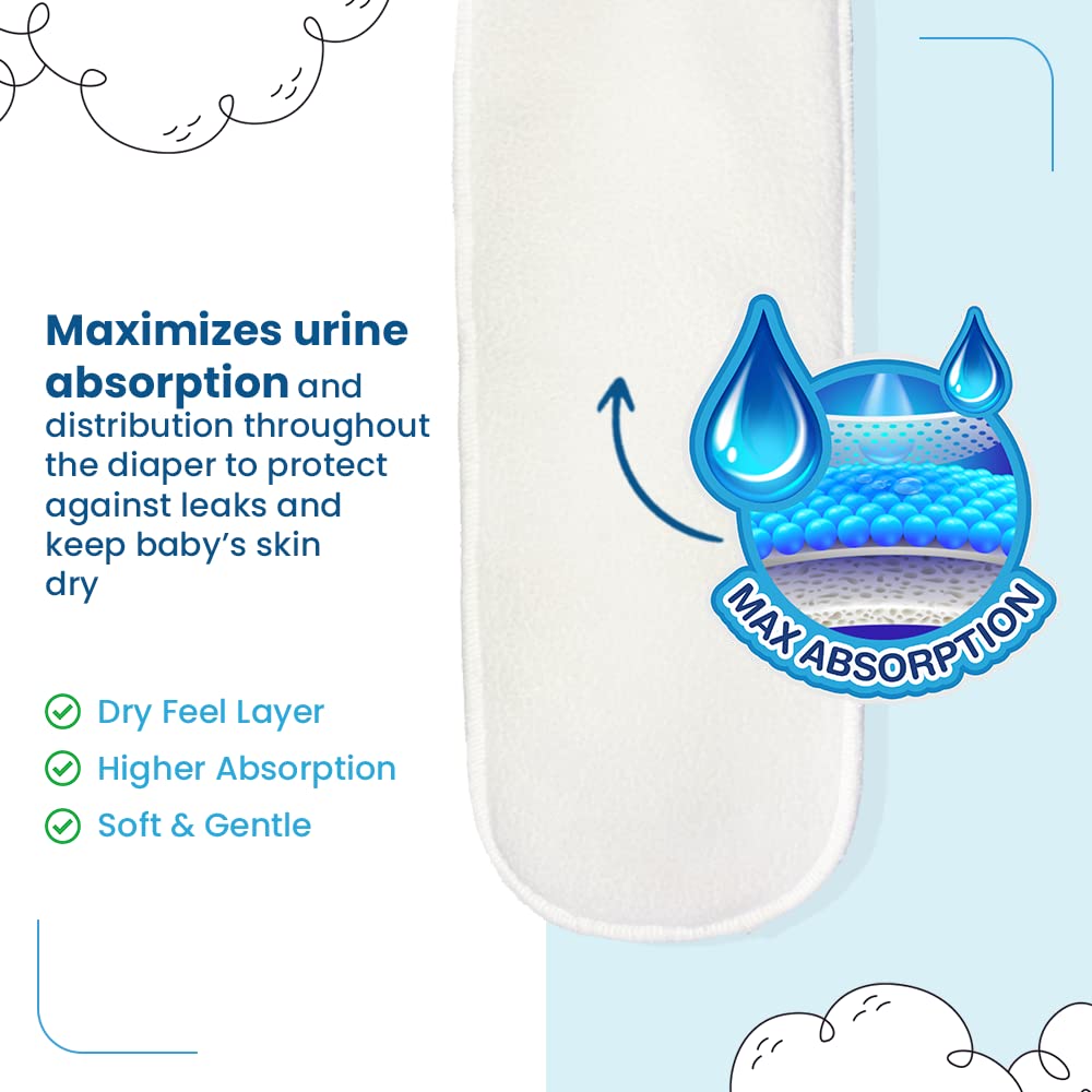 - Water-Proof: Outer layer of the diaper has membrane coating which makes it waterproof and we also use azo-free colors and it is BPA free to make it 100% for your baby.