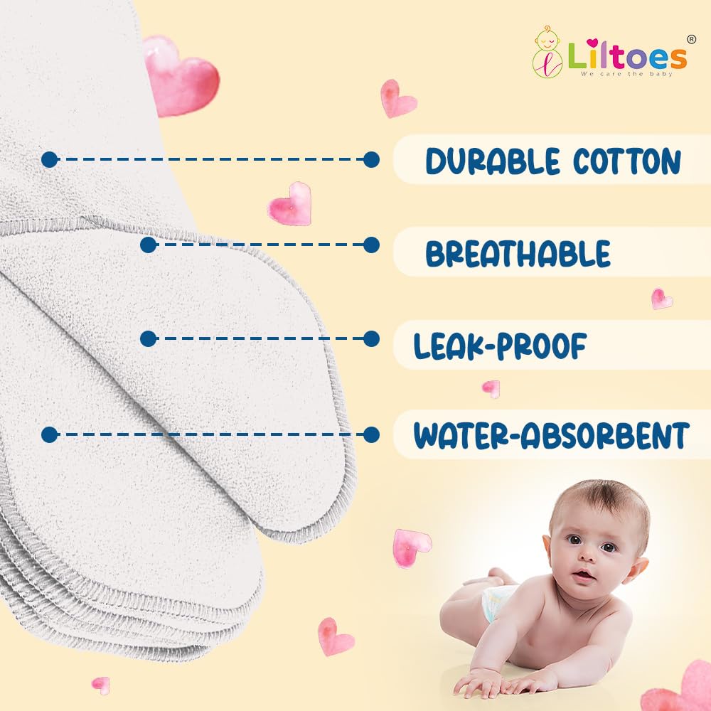 • Liltoes Cloth Diaper Soakers: Soft and gentle on your baby's delicate skin.