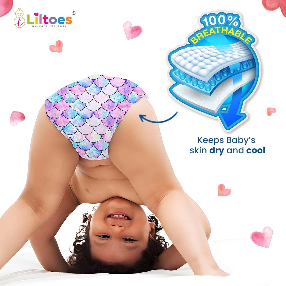 Introducing Liltoes' Little Mermaid Diaper Pattern, a delightful fusion of functionality and whimsical charm. Elevate your diapering experience with the adorable design inspired by avocados, brought to you by the trusted brand Liltoes. 1. Avocado-Inspired Whimsy: Liltoes brings a touch of playful joy to diapering with the Little Mermaid pattern. The charming avocados adorning each diaper create a cute and cheerful look, making diaper changes a fun and memorable experience. 2. Supreme Comfort: Crafted with Liltoes' commitment to quality, Little Mermaid Diaper Pattern ensures supreme comfort for your little one. The diapers feature an ultra-soft fabric that feels gentle against your baby's delicate skin. 3. Practical and Reliable: Liltoes understands the demands of parenting, and Little Mermaid diapers are designed with convenience in mind. The diapers come with adjustable tabs for a secure fit, ensuring a snug and reliable solution for leak protection. 4. Premium Absorbency: Liltoes prioritizes your baby's dryness. Little Mermaid diapers incorporate a premium absorbent core, effectively locking in moisture to keep your baby comfortable and dry throughout the day. 5. Eco-Friendly Choice: Liltoes cares not only for your baby but also for the environment. Little Mermaid Diaper Pattern is crafted with eco-friendly materials, offering a sustainable and conscious choice for environmentally aware parents. 6. Joyful Diaper Changes: Transform routine diaper changes into moments of joy with Liltoes' Little Mermaid Diaper Pattern. The whimsical avocado design brings positivity and smiles to everyday tasks, creating cherished memories for both parents and babies. Choose Liltoes' Little Mermaid Diaper Pattern for a perfect blend of style, comfort, and functionality. Make diapering a delightful experience with the trusted quality of Liltoes.