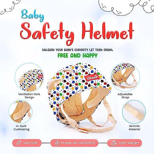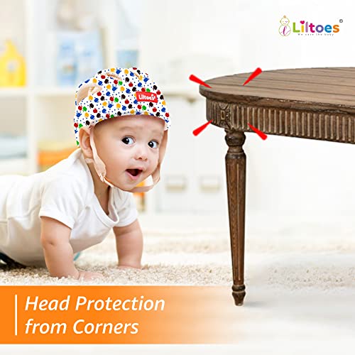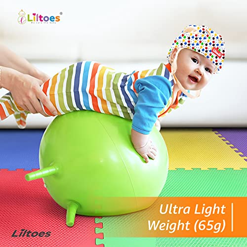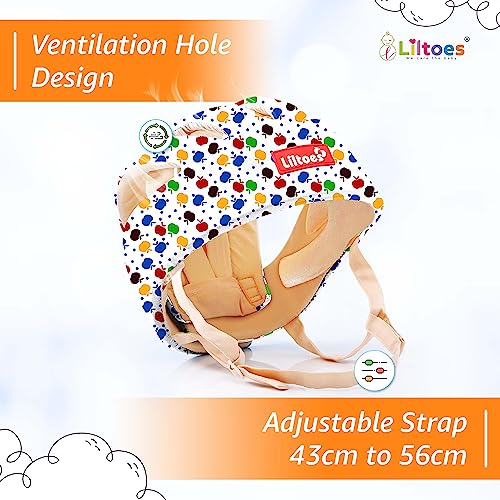 Liltoes Baby Safety Helmet is made from high-density, cushiony foam with a soft, breathable cotton outer layer. It offers 360° head protection while being lightweight and comfortable for everyday use. The fabric is skin-friendly, sweat-absorbent, and safe for babies’ sensitive skin.