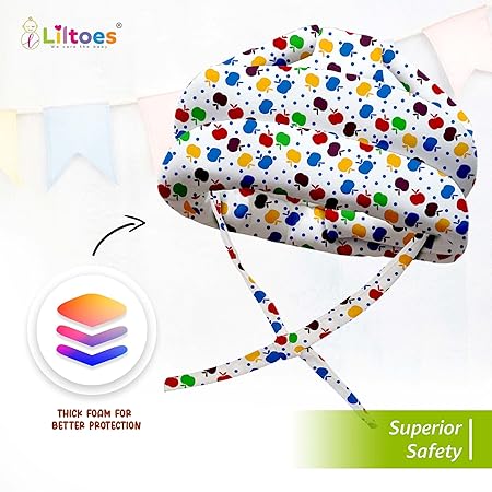 Liltoes Baby Safety Helmet is made from high-density, cushiony foam with a soft, breathable cotton outer layer. It offers 360° head protection while being lightweight and comfortable for everyday use. The fabric is skin-friendly, sweat-absorbent, and safe for babies’ sensitive skin.