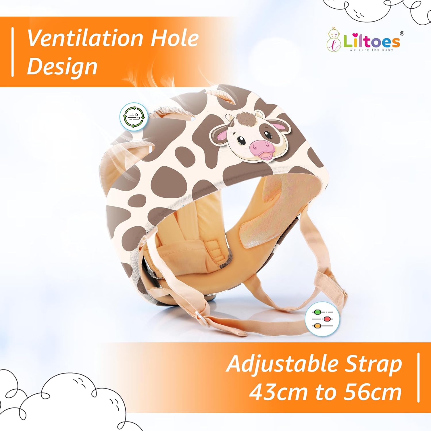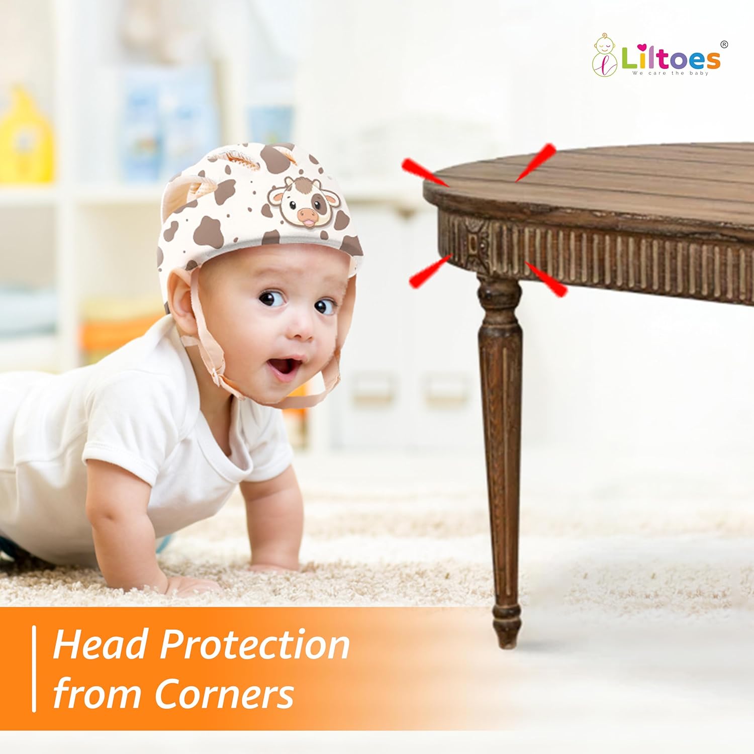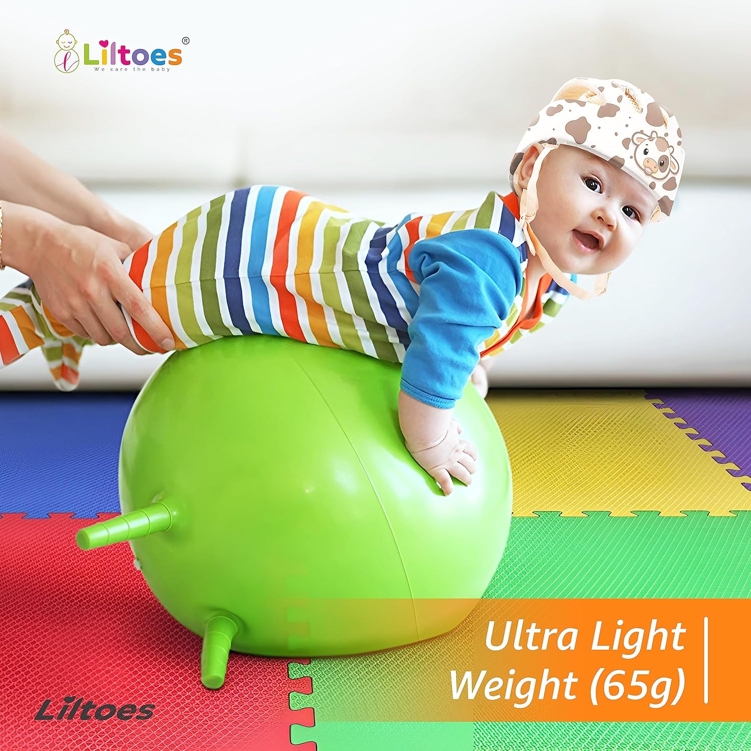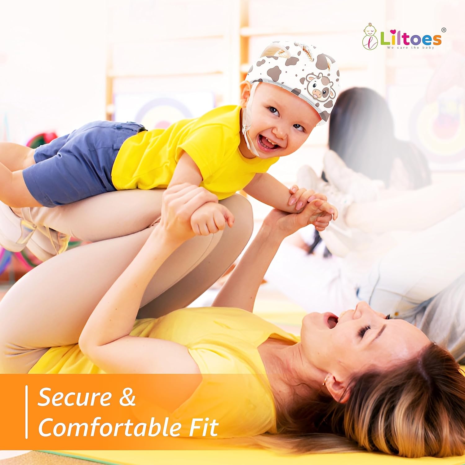 Liltoes Baby Safety Helmet is made from high-density, cushiony foam with a soft, breathable cotton outer layer. It offers 360° head protection while being lightweight and comfortable for everyday use. The fabric is skin-friendly, sweat-absorbent, and safe for babies’ sensitive skin.