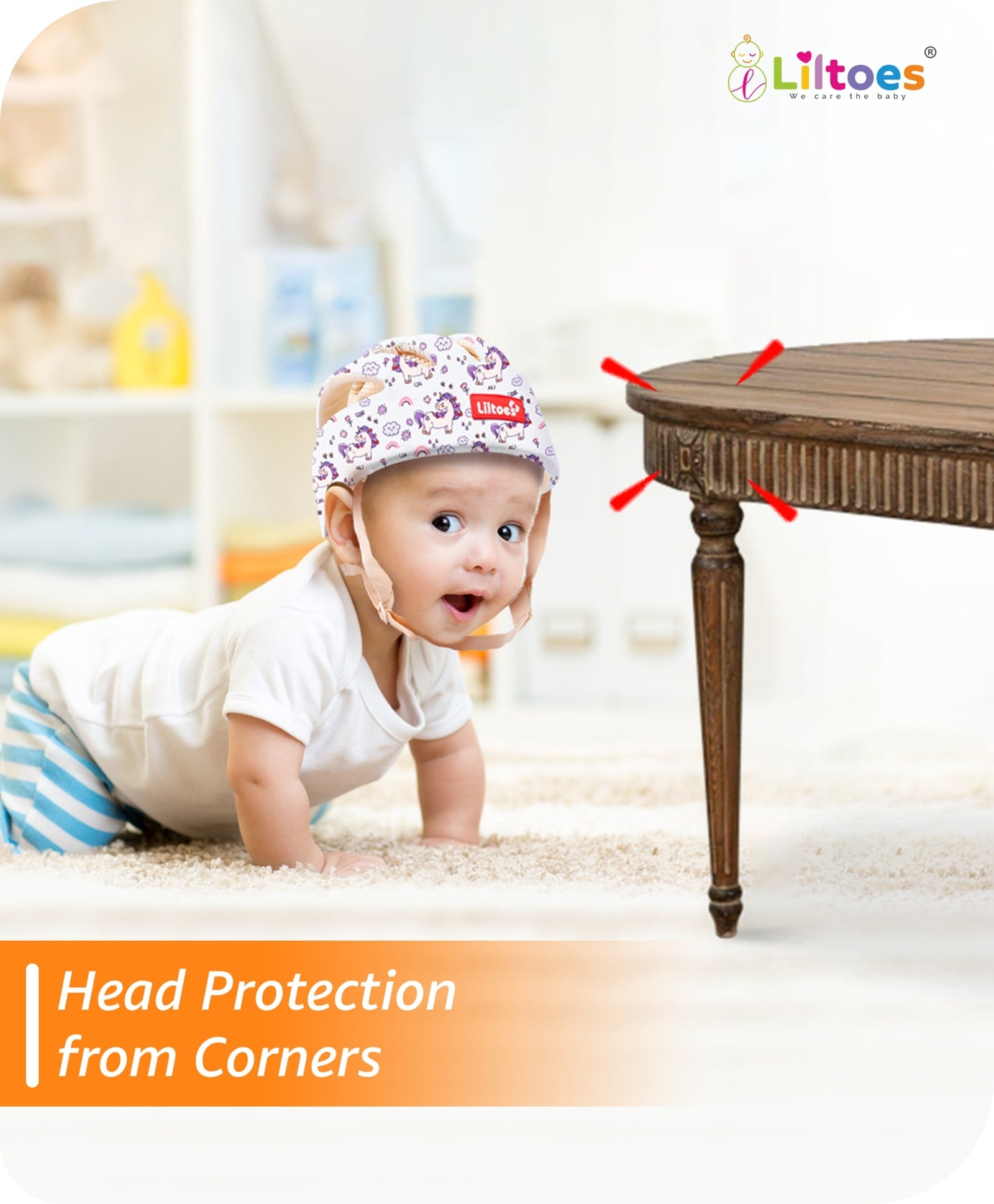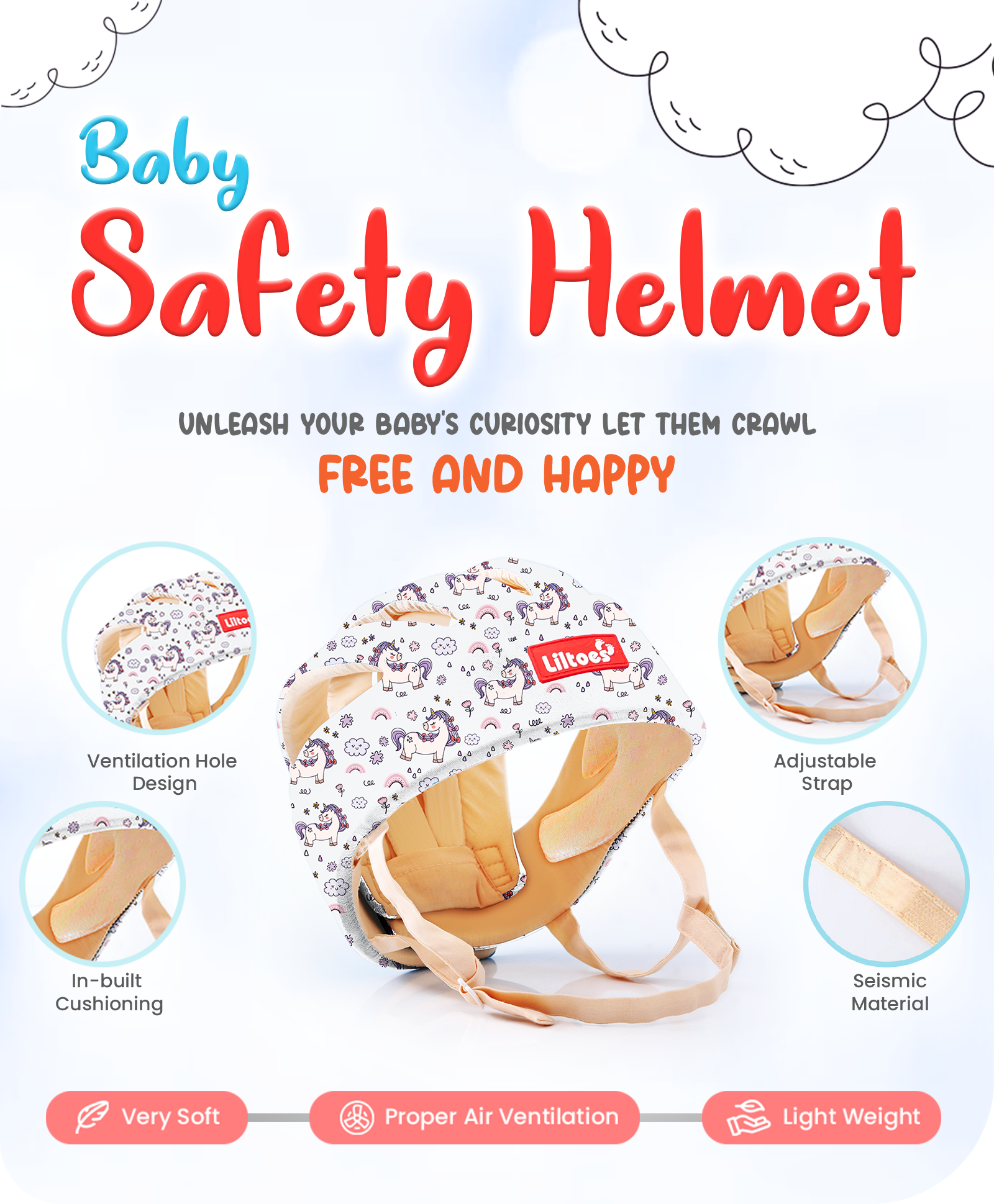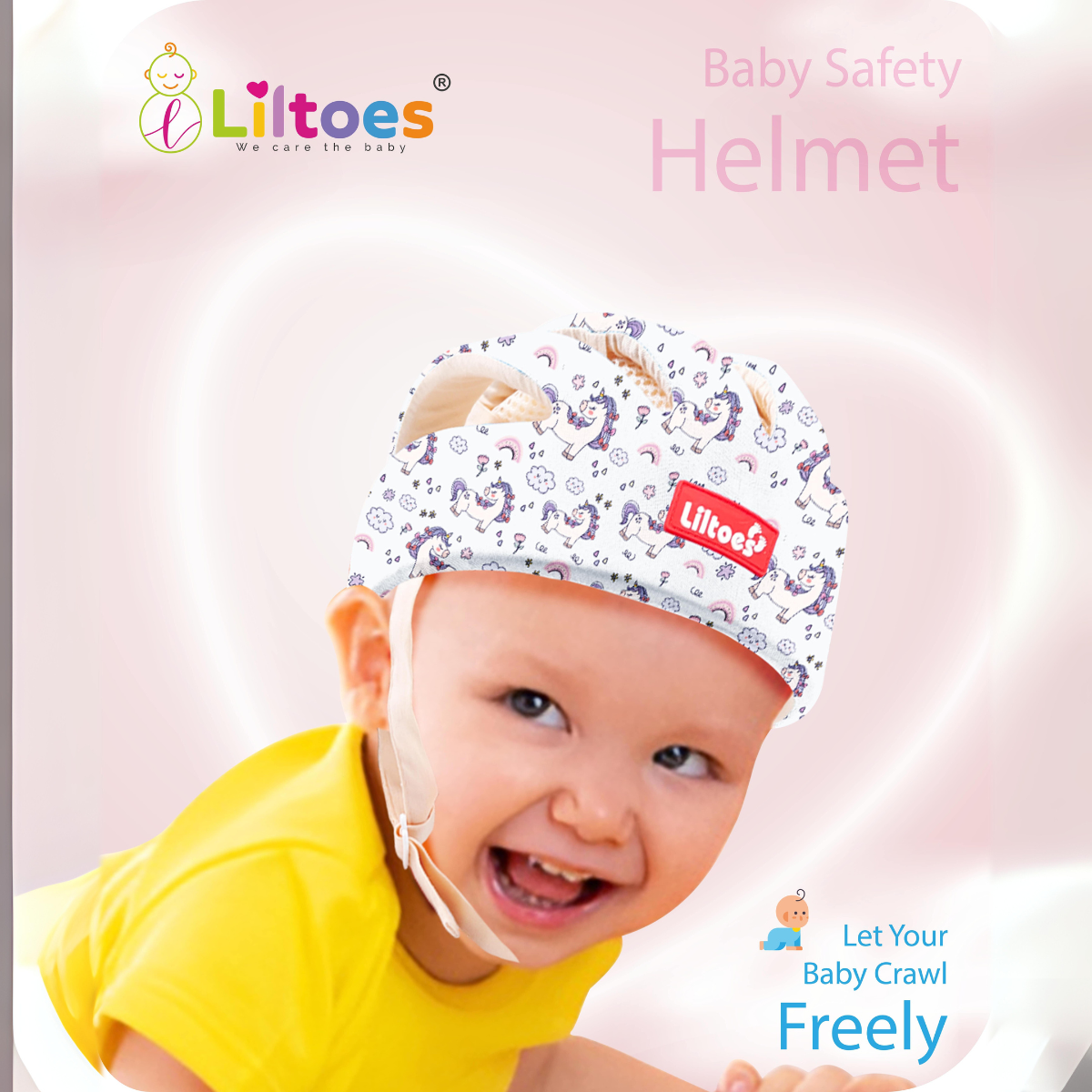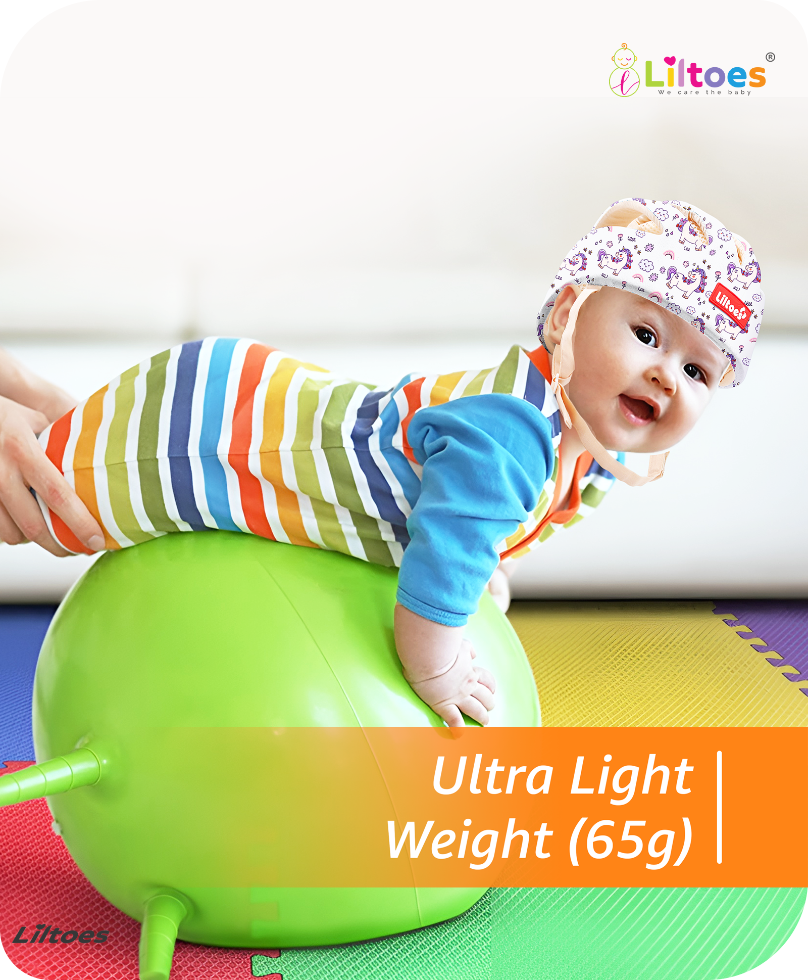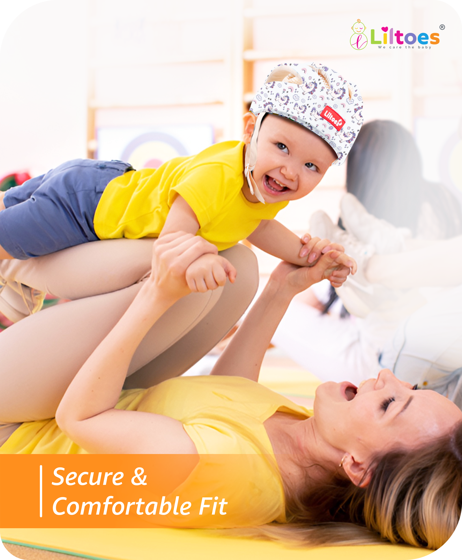 Liltoes Baby Safety Helmet is made from high-density, cushiony foam with a soft, breathable cotton outer layer. It offers 360° head protection while being lightweight and comfortable for everyday use. The fabric is skin-friendly, sweat-absorbent, and safe for babies’ sensitive skin.