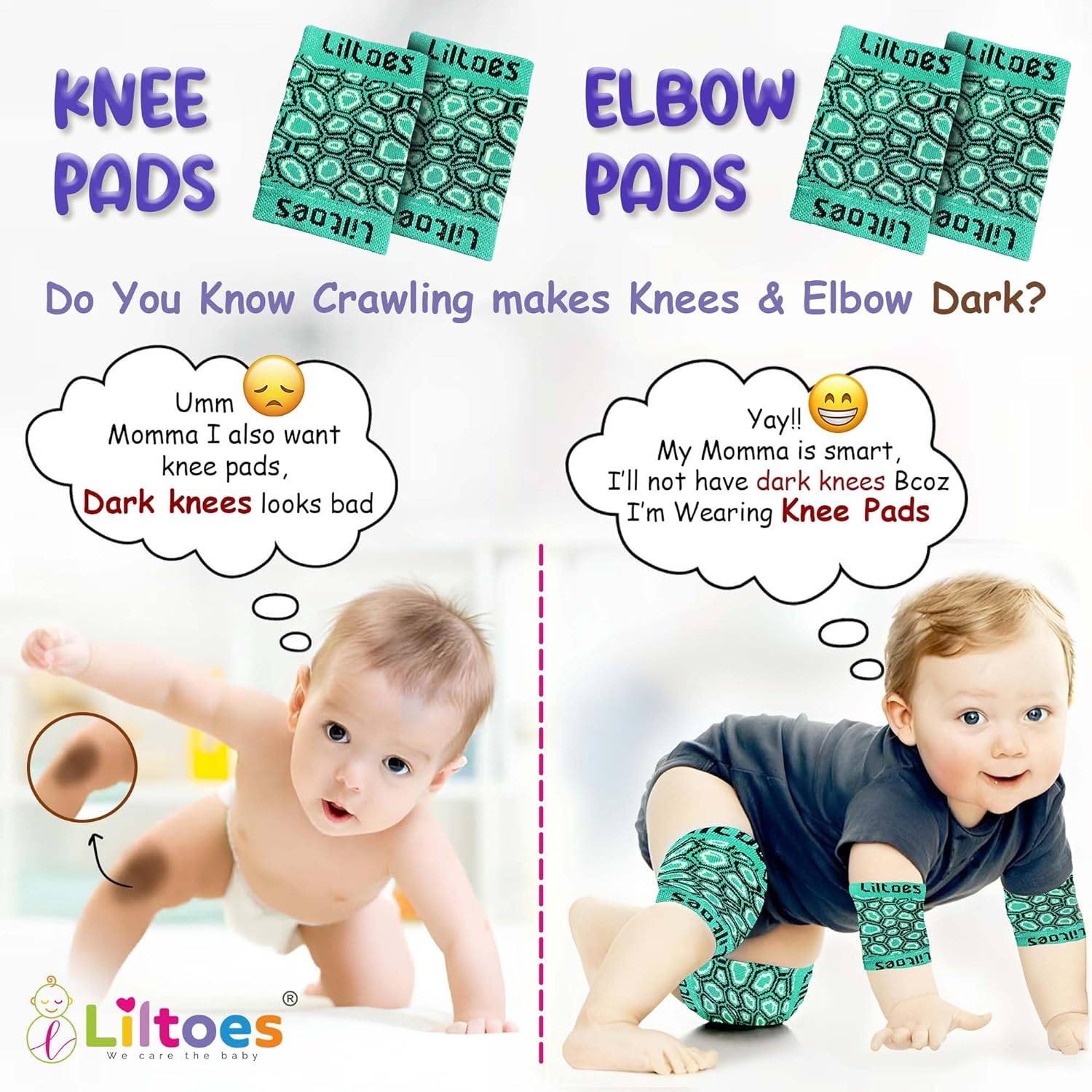 - Kneepads protect your baby's knees from bruises and scrapes while crawling.