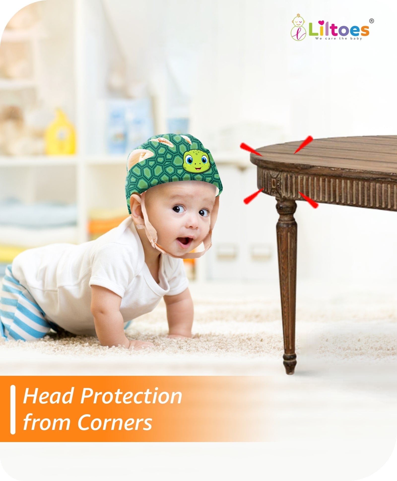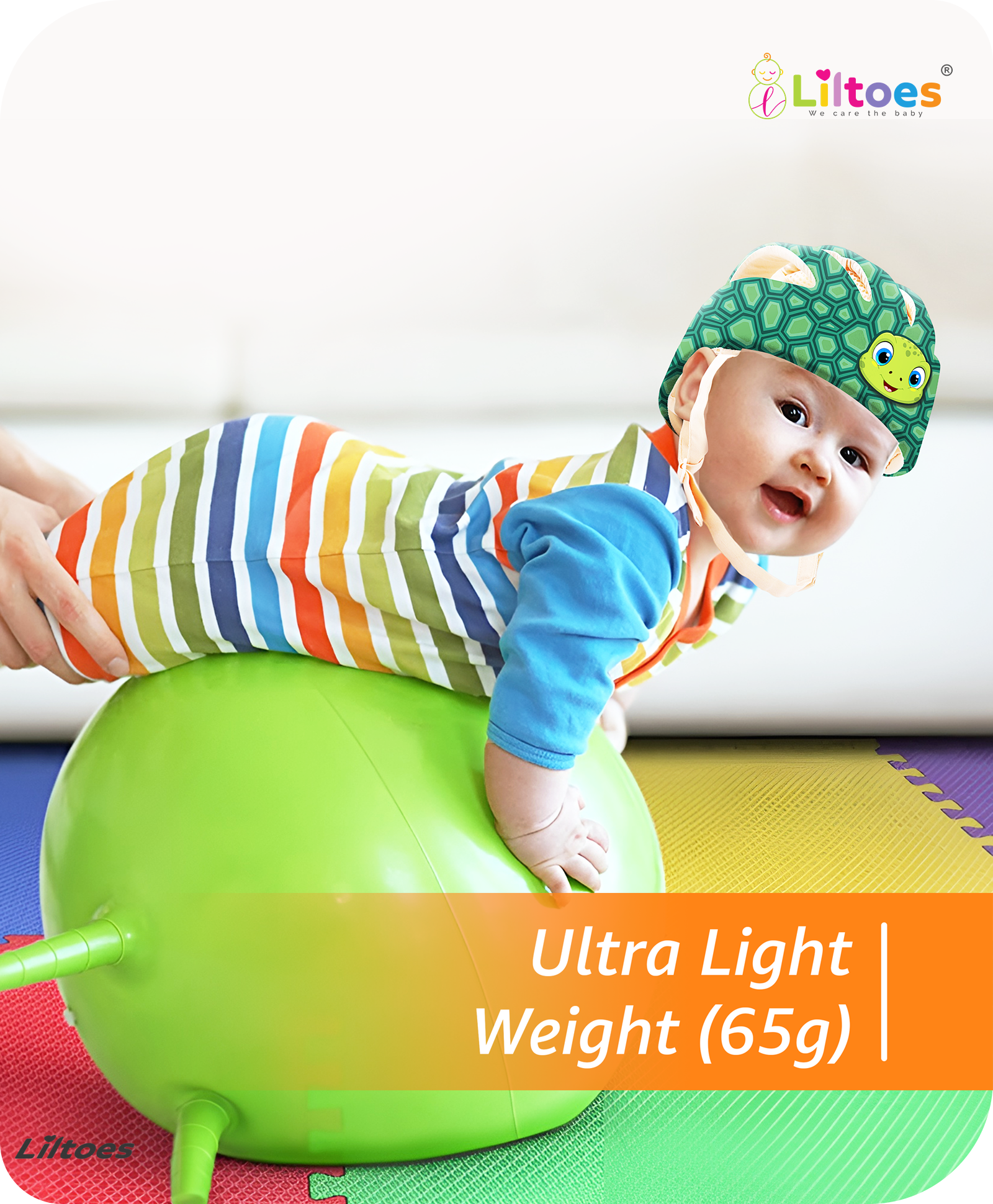 Liltoes Baby Safety Helmet is made from high-density, cushiony foam with a soft, breathable cotton outer layer. It offers 360° head protection while being lightweight and comfortable for everyday use. The fabric is skin-friendly, sweat-absorbent, and safe for babies’ sensitive skin.
