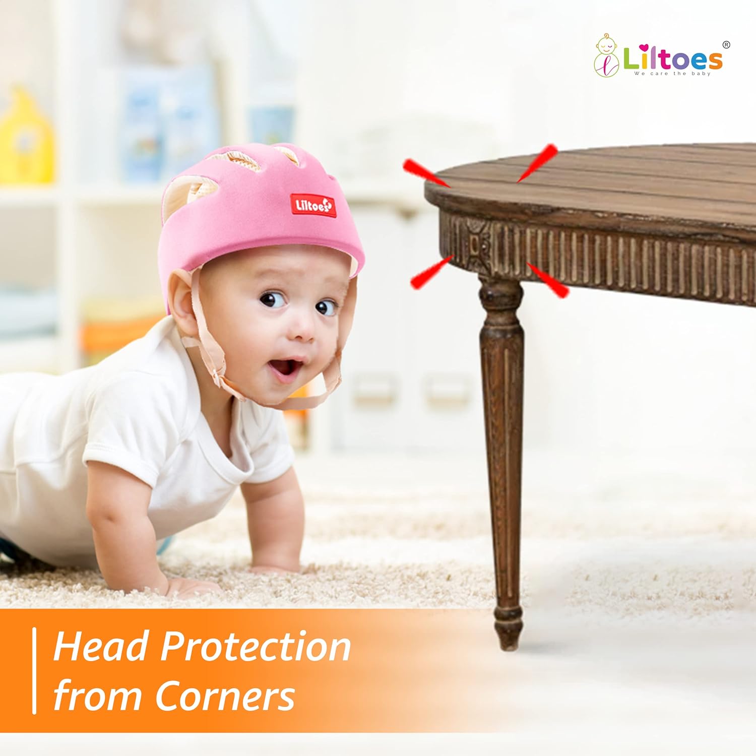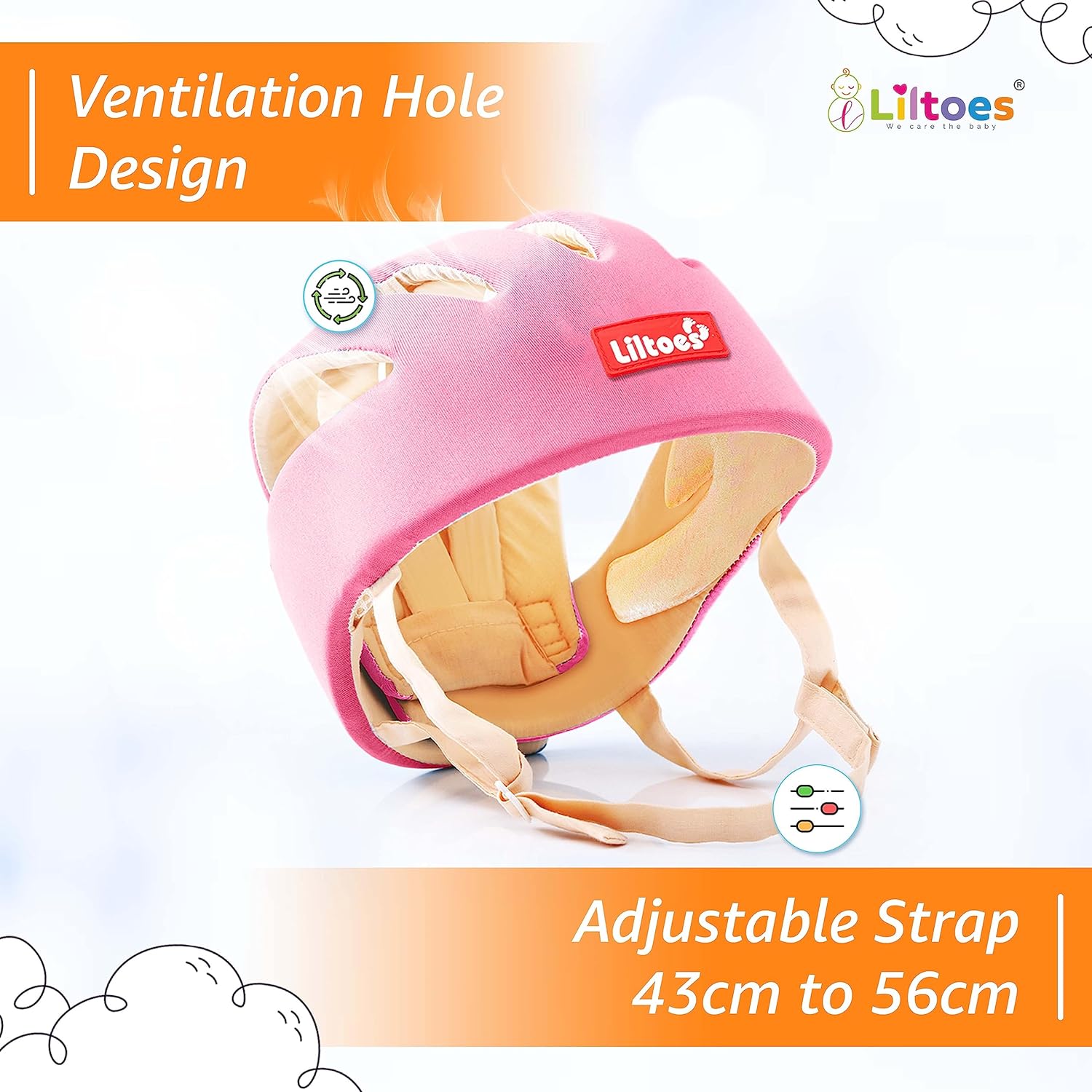 Liltoes Baby Safety Helmet is made from high-density, cushiony foam with a soft, breathable cotton outer layer. It offers 360° head protection while being lightweight and comfortable for everyday use. The fabric is skin-friendly, sweat-absorbent, and safe for babies’ sensitive skin.