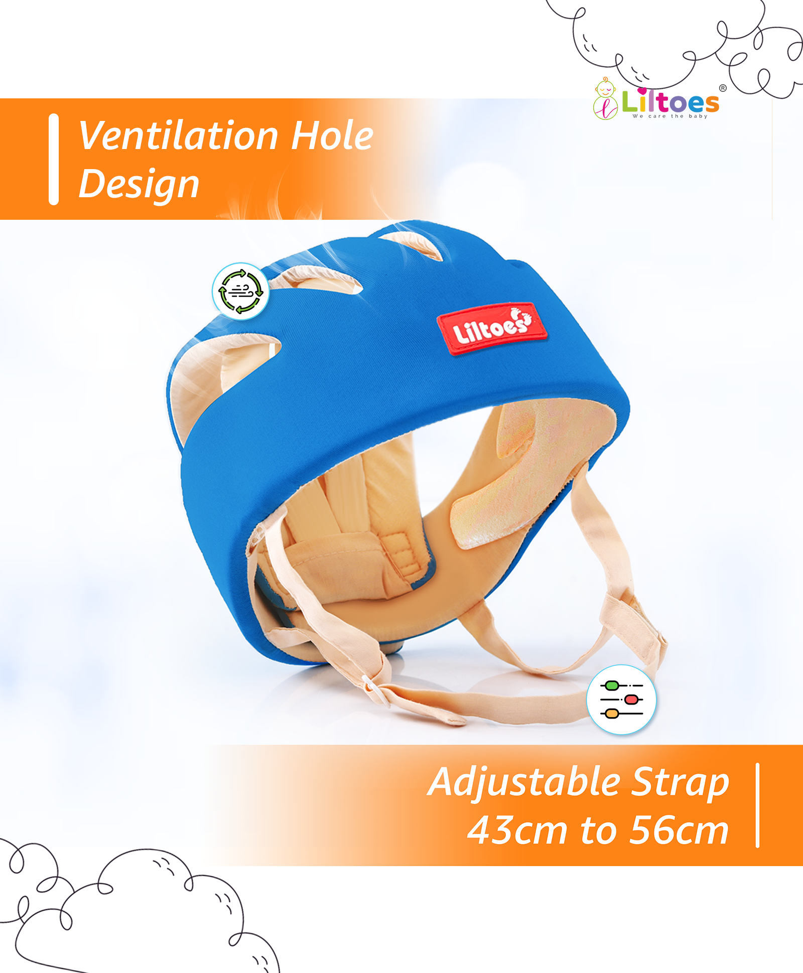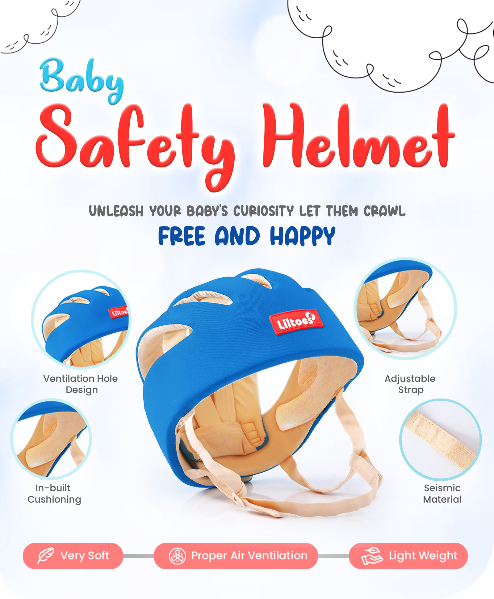 Liltoes Baby Safety Helmet is made from high-density, cushiony foam with a soft, breathable cotton outer layer. It offers 360° head protection while being lightweight and comfortable for everyday use. The fabric is skin-friendly, sweat-absorbent, and safe for babies’ sensitive skin.
