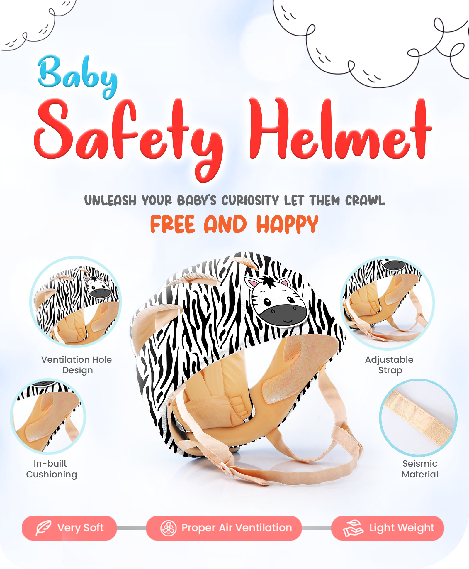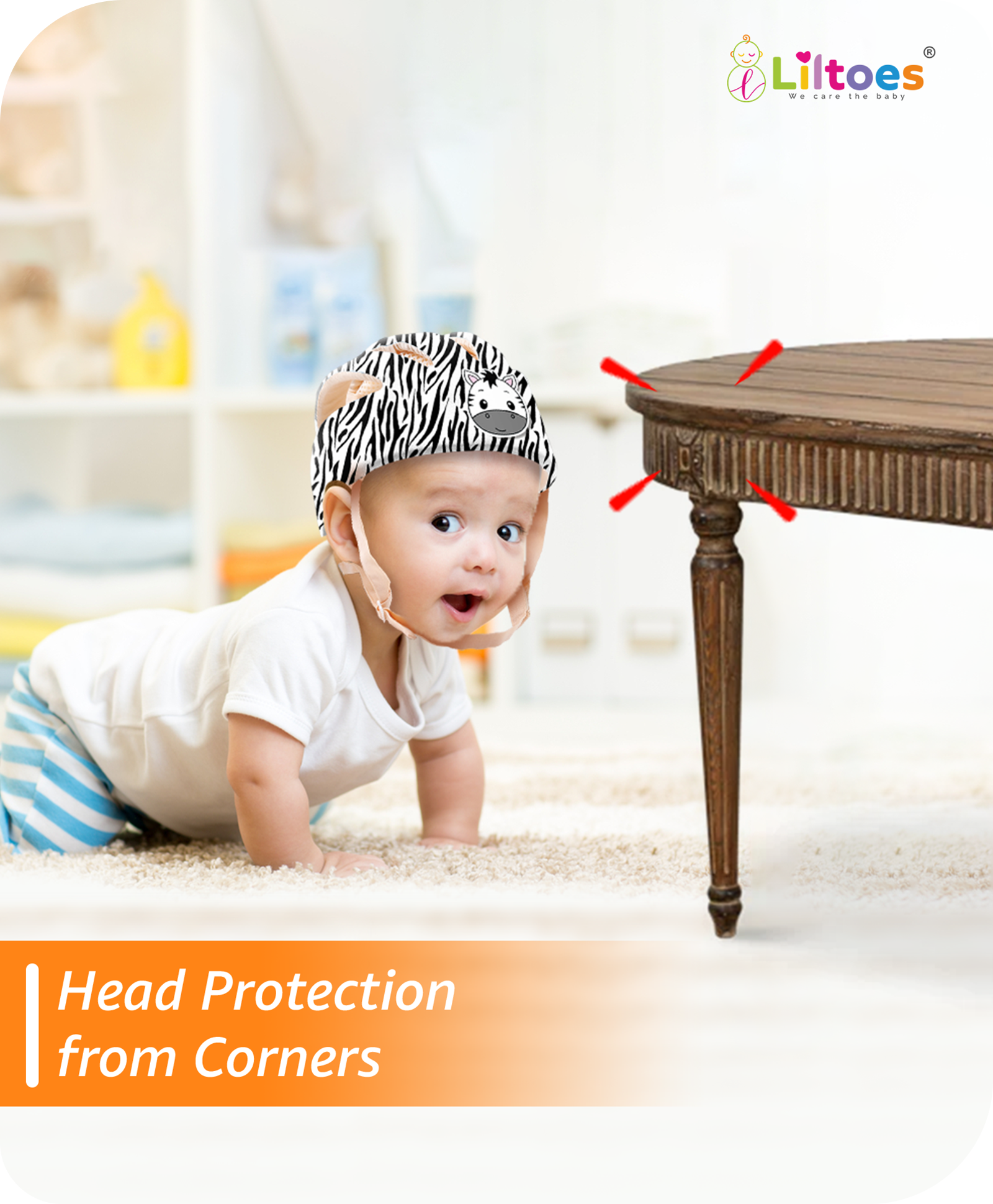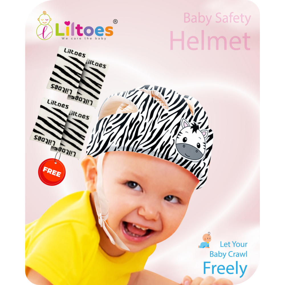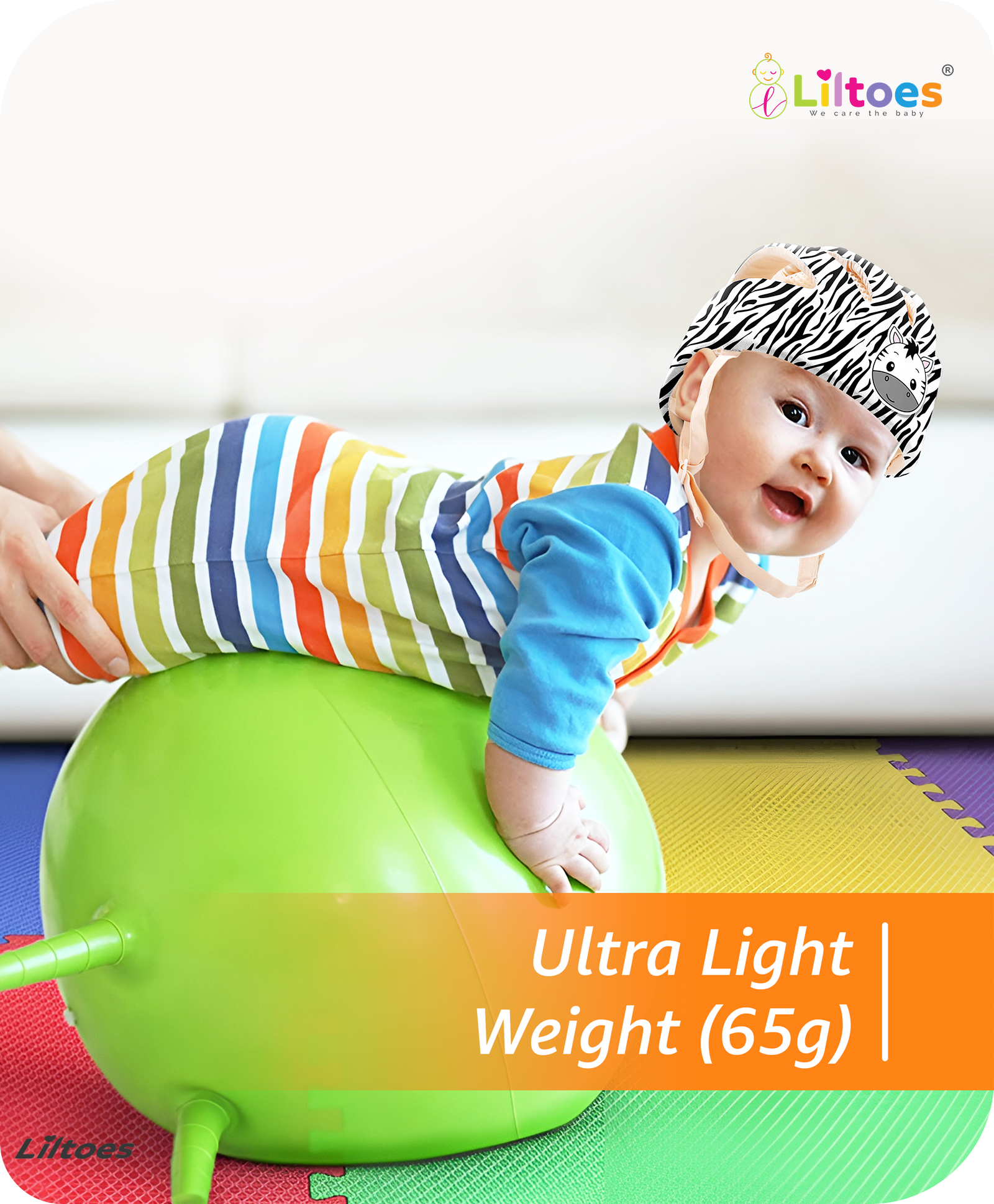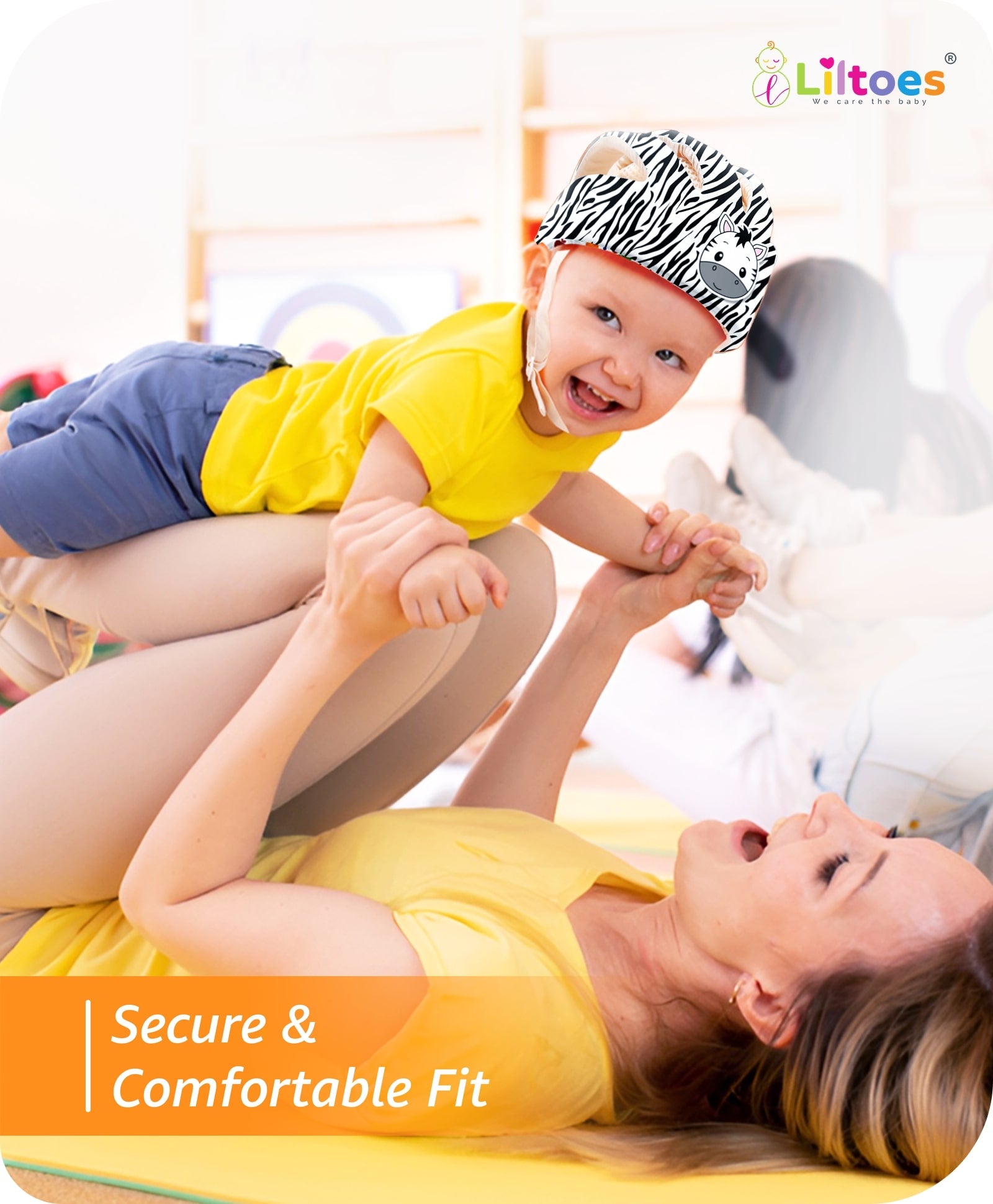 Liltoes Baby Safety Helmet is made from high-density, cushiony foam with a soft, breathable cotton outer layer. It offers 360° head protection while being lightweight and comfortable for everyday use. The fabric is skin-friendly, sweat-absorbent, and safe for babies’ sensitive skin.
