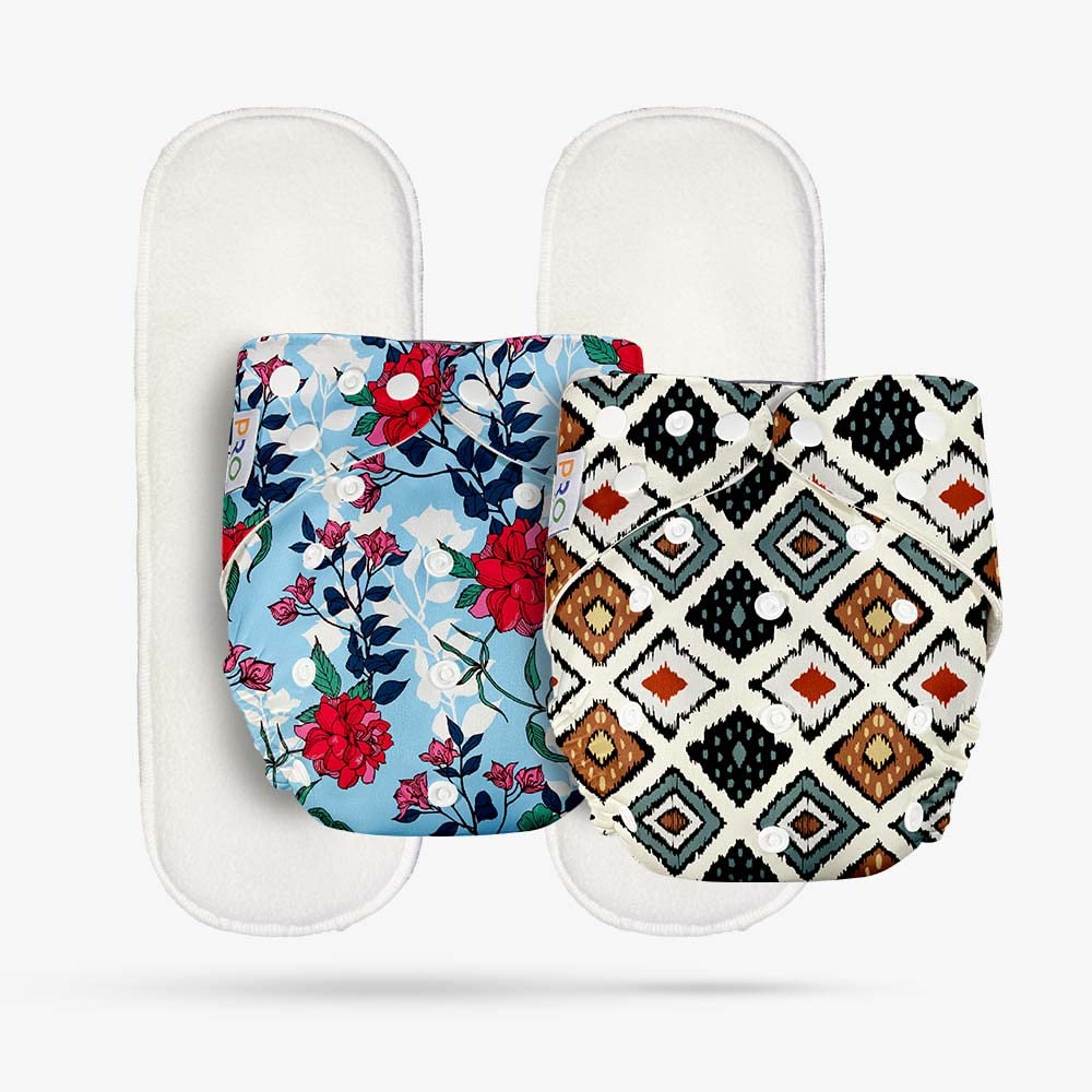Liltoes Cloth Diapers are made with 100% soft, breathable cotton on the inner layer to keep your baby’s skin dry and rash-free. The outer layer is crafted from a waterproof yet breathable PUL (Polyurethane Laminate) fabric, preventing leaks while allowing air circulation. Our reusable inserts are made of high-absorbency microfiber or bamboo fleece, designed to lock in moisture effectively.