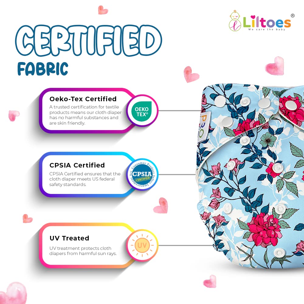 • Safe For Your Child: For the family baby’s health was the reason you chose cloth diapering. Disposable diapers have often been found to contain chemicals including dioxins and sodium polyacrylamide, Liltoes Cloth Diapers help limit your child’s exposure to these chemicals.