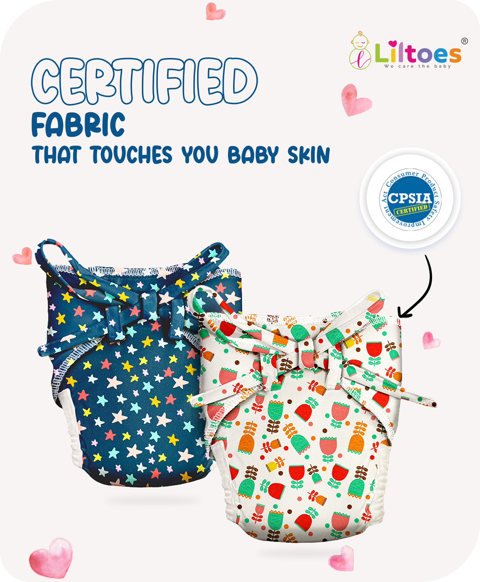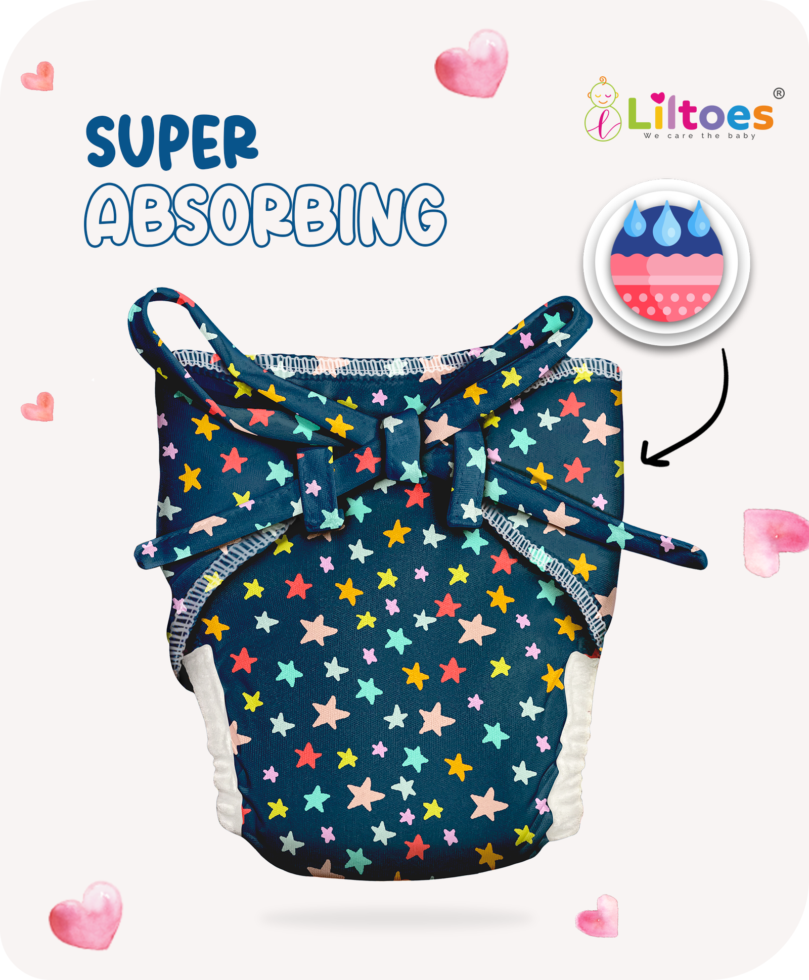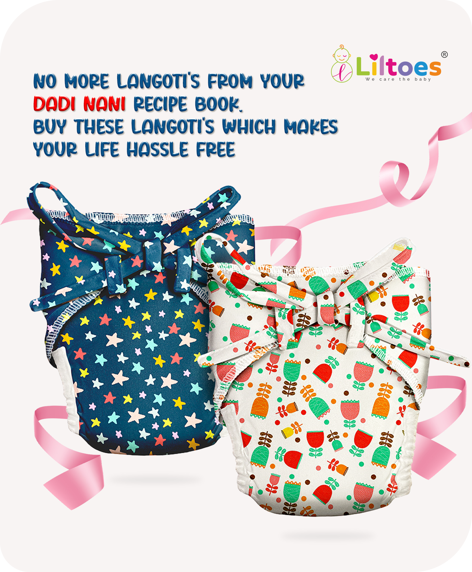Liltoes Langots are crafted with 100% premium cotton, ensuring a soft, breathable, and gentle touch on your baby’s delicate skin. The fabric is hypoallergenic, free from harmful chemicals, and designed to keep your baby comfortable all day long. The inner layer is absorbent yet allows enough air circulation to prevent rashes and irritation.